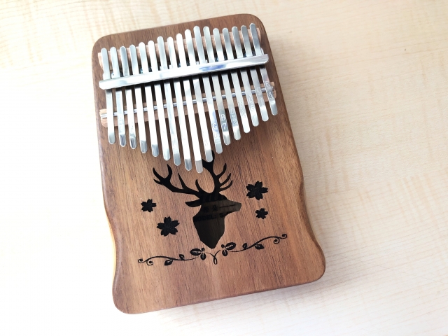 アフリカ発祥の楽器で、一般的に木でできた土台に17本のキーが配置されています。